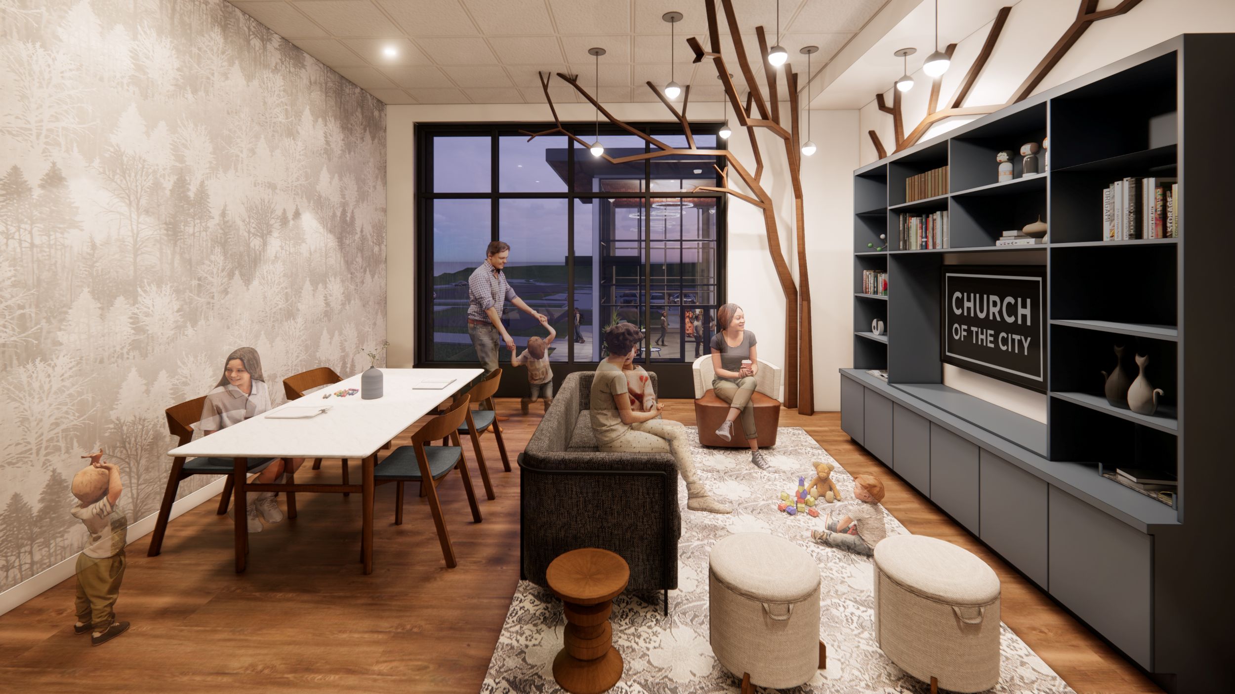 Church of the City has undertaken a masterplan for its 45-acre Franklin campus to better support its growing congregation and expand community outreach. The Village, a new collection of community resource buildings and exterior courtyards, will provide spaces for a retail boutique, food and resource distribution center, café, indoor playscape, offices, classrooms, and a multipurpose event center. With a focus on serving children in foster care, foster families, single parents, mental health and wellness education, and partnerships with local missional organizations, the project both strengthens the church’s ministries and reimagines its prominent site as a visible expression of its mission within the City of Franklin.