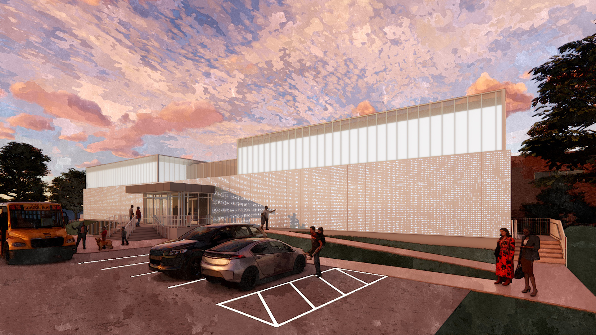 The Tennessee School for the Blind (TSB) is enhancing its PK–12 campus with upgrades that align with its mission to foster independence, inclusivity, and self confidence for visually impaired students. Central to this commission is the expansion of the Gymnasium Building, featuring a new entrance and two gym spaces designed specifically for student competition, play, and learning. The gym addition incorporates meaningful design elements, including solid metal panels punctuated with a braille pattern spelling out the school’s name—illuminated at night for both architectural impact and student connection—and translucent wall panels that bring diffused daylight to the courts while softly glowing after dark. Complementing these improvements are site upgrades, including a renovated 25,000-square-foot playground at the heart of campus and ADA-compliant bathroom renovations, ensuring accessibility for all. Together, these enhancements create a supportive, inspiring environment for TSB’s students.